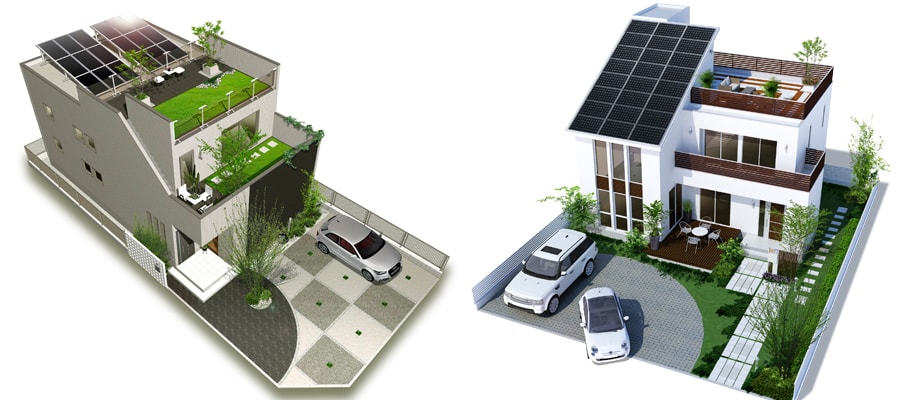 屋上緑化住宅(鳥瞰)①