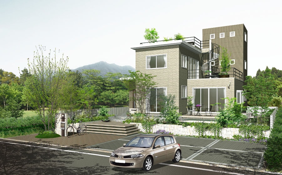 のどかな光や優しい風のそよぐ、心地よい住宅。夢のマイホームのお望みのイメージを表現します。