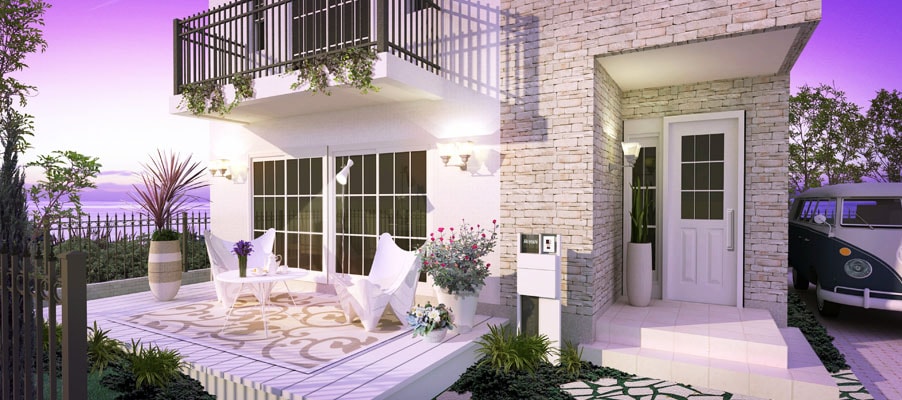 戸建住宅ファサード(夕景パース)